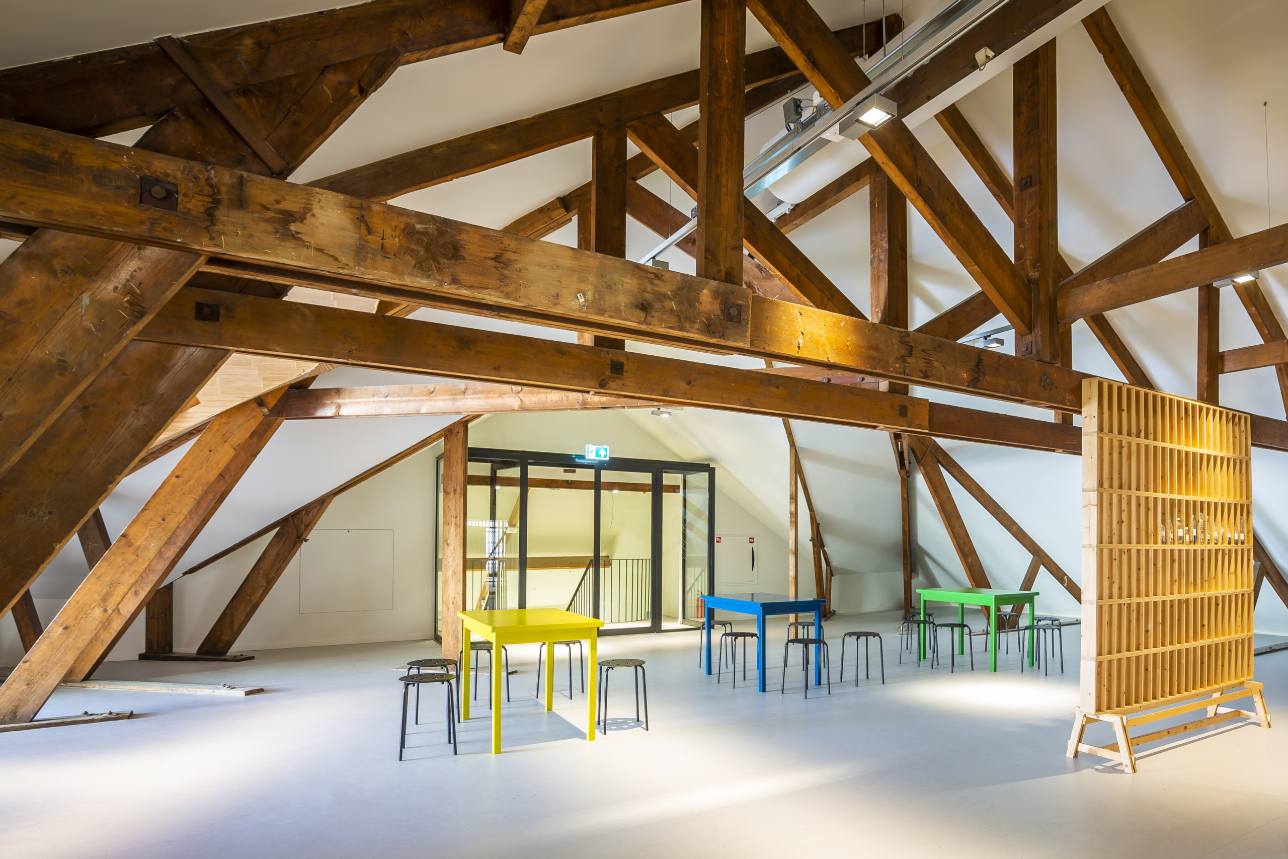 De voorheen ongebruikte zolderruimte is getransformeerd tot multifunctionele projectruimte voor educatieve activiteiten. Vanwege de hogere bezetting is in de ontwerpfase het brandveiligheidsconcept zorgvuldig geanalyseerd en uitgewerkt, met bijzondere aandacht voor veilige ontvluchting en het behoud van het monumentale karakter van de trappenhuizen.