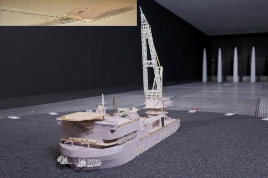 Metingen van de windbelastingen zijn uitgevoerd op een schaalmodel van het schip in de Atmosferische Grenslaag-windtunnel van Peutz. De windbelastingen zijn gemeten met een hoogfrequent 6-componenten weegsysteem, terwijl het model werd blootgesteld aan een invalsstroom overeenkomstig het actuele maritieme windprofiel voor snelheid en turbulentie in de grenslaag.